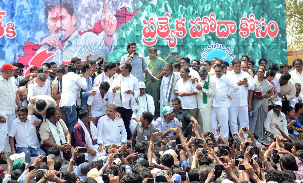 YSRCP Chief YS Jagan Mohan Reddy staged a dharna seeking special status to Andhra Pradesh in front of the Collectorate in Kakinada to on 10th May 2016.