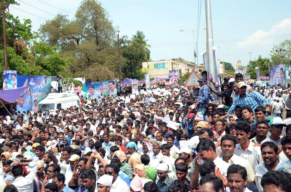 YSRCP Chief YS Jagan Mohan Reddy staged a dharna seeking special status to Andhra Pradesh in front of the Collectorate in Kakinada to on 10th May 2016.