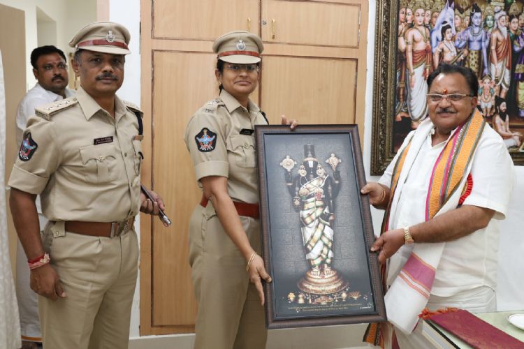 The new Urban SP of Tirupati Smt Jayalakshmi has formally met TTD Trust Board Chief Dr Ch Krishna Murty in his camp office at SV Rest House in Tirumala on 14th May 2016.