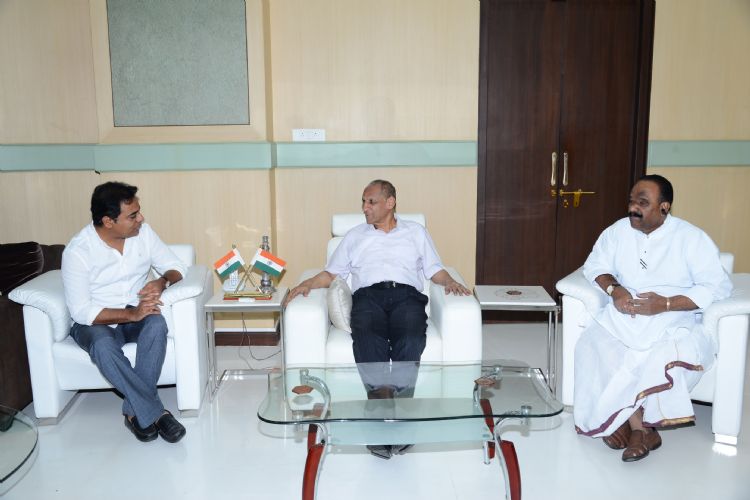 Telangana IT Minister K. Taraka Rama Rao and Home Minister Nayini Narasimha Reddy met Governor ESL Narasimhan at Rajbhavan on 18th May 2016.