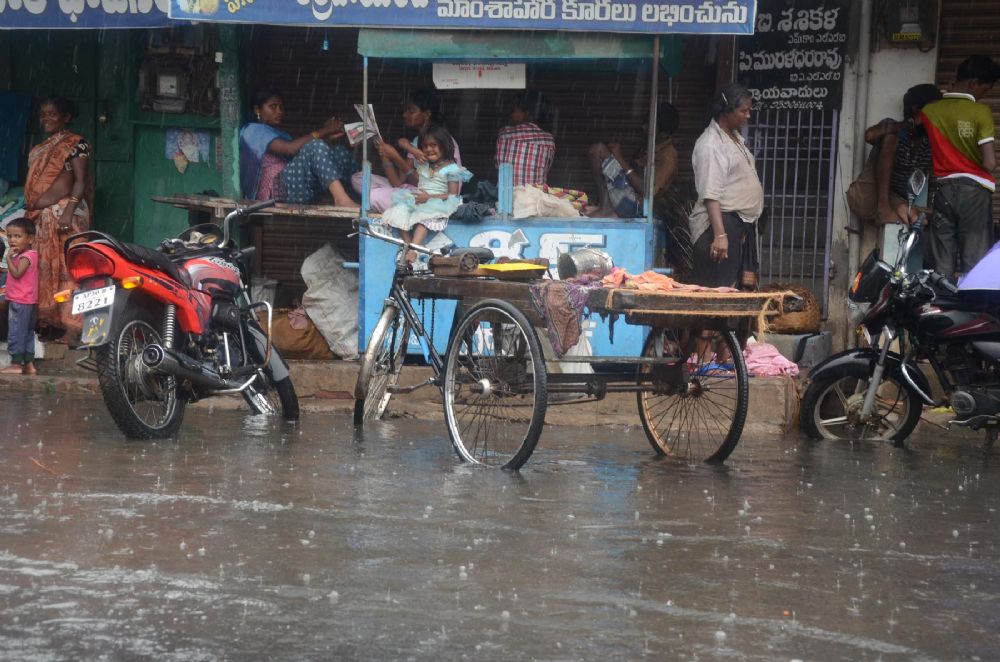 Srikakulam district is witnessing heavy rains and a curfew-like situation prevails everywhere, including on national highway where traffic is very thin on 18th May 2016.