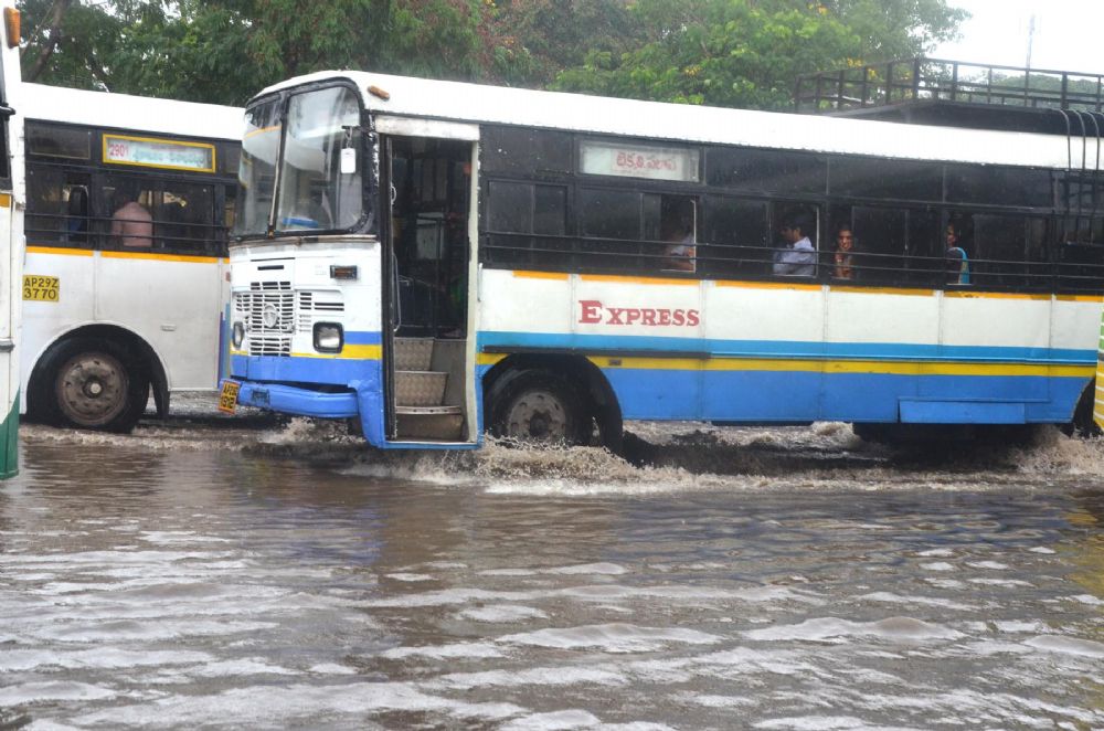 Srikakulam district is witnessing heavy rains and a curfew-like situation prevails everywhere, including on national highway where traffic is very thin on 18th May 2016.