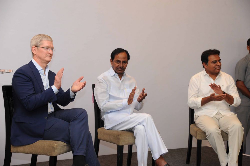 Chief Minister K. Chandrashekar Rao inaugurated the Apple Development Centre along with the Apple CEO Tim Cook and IT Minister KT Rama Rao at Waverock building, Nanakramguda, Hyderabad on 19th May 2016.