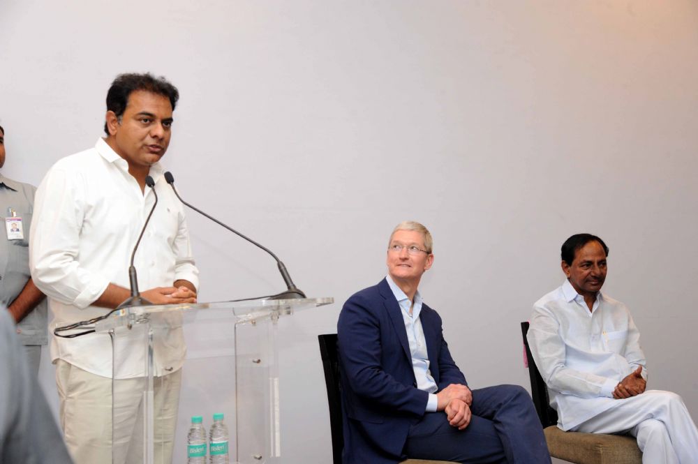 Chief Minister K. Chandrashekar Rao inaugurated the Apple Development Centre along with the Apple CEO Tim Cook and IT Minister KT Rama Rao at Waverock building, Nanakramguda, Hyderabad on 19th May 2016.