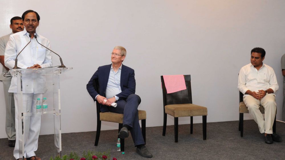 Chief Minister K. Chandrashekar Rao inaugurated the Apple Development Centre along with the Apple CEO Tim Cook and IT Minister KT Rama Rao at Waverock building, Nanakramguda, Hyderabad on 19th May 2016.
