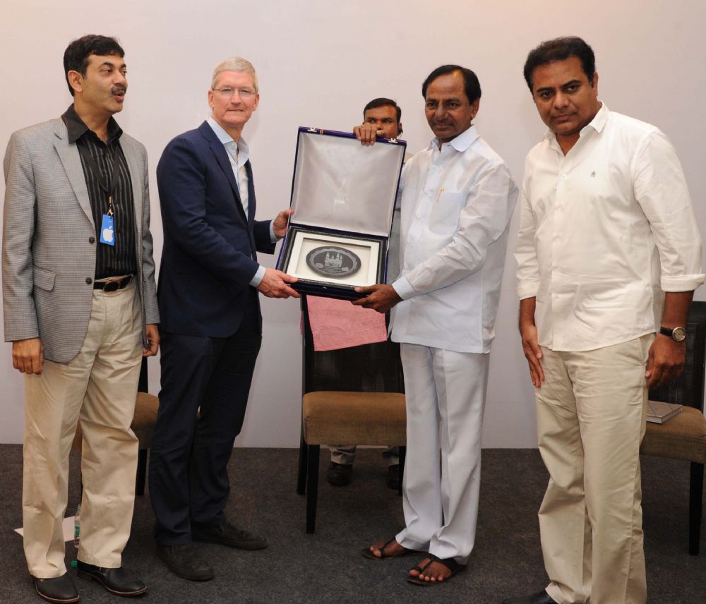 Chief Minister K. Chandrashekar Rao inaugurated the Apple Development Centre along with the Apple CEO Tim Cook and IT Minister KT Rama Rao at Waverock building, Nanakramguda, Hyderabad on 19th May 2016.