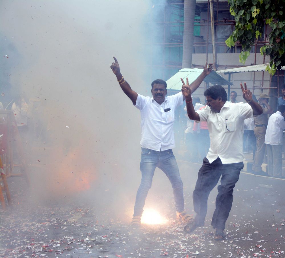 AIADMK supporters celebrate the party's victory in Tamil Nadu's assembly elections, at the party headquarters in Chennai on 19th May 2016.