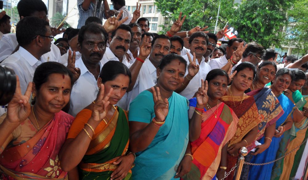 AIADMK Chief and Tamilnadu Chief Minister Jayalalitha celebrates her party victory in recent Assembly Elections with party leaders on 20th May 2016.