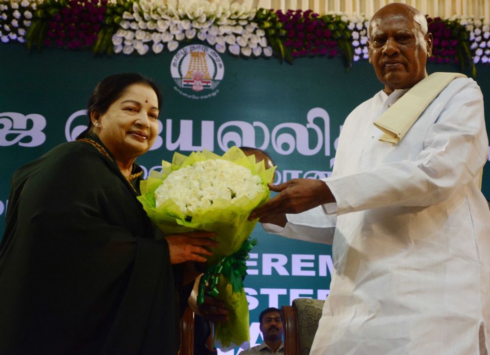 AIADMK general secretary Jayalalithaa was sworn in as Tamil Nadu Chief Minister by Governor K. Rosaiah at the Madras University’s Centenary Hall on 23rd May 2016.