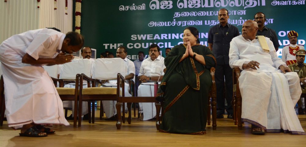 AIADMK general secretary Jayalalithaa was sworn in as Tamil Nadu Chief Minister by Governor K. Rosaiah at the Madras University’s Centenary Hall on 23rd May 2016.