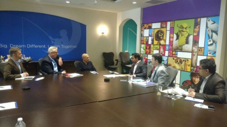 On the fifth day of the official business trip to US, Minister for IT and Industries K T Rama Rao met Jeffrey Katzenberg, CEO of Dreamworks at their office.