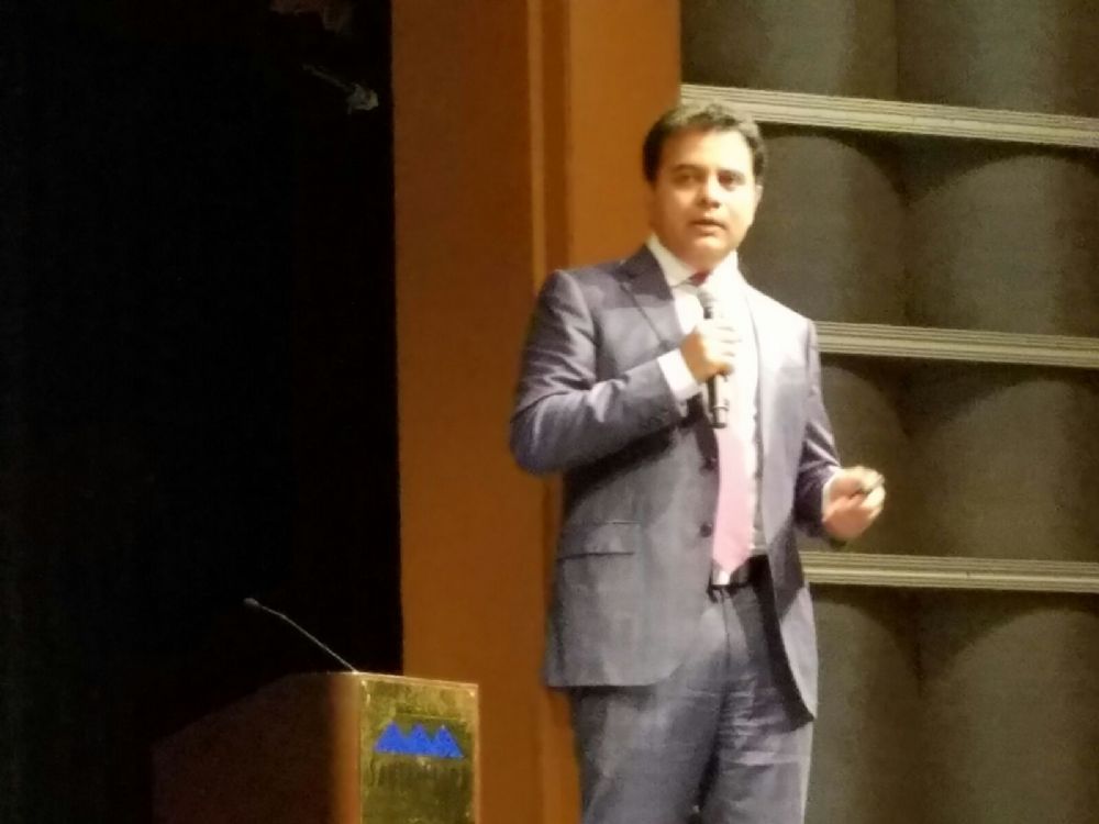 Information Technology Minister KTR addressed an impressive gathering at an event hosted by The Indus Entrepreneurs (TiE) at Santa Clara in California, USA. Prominent CEOs and industrialists from the Silicon Valley took part in the event.