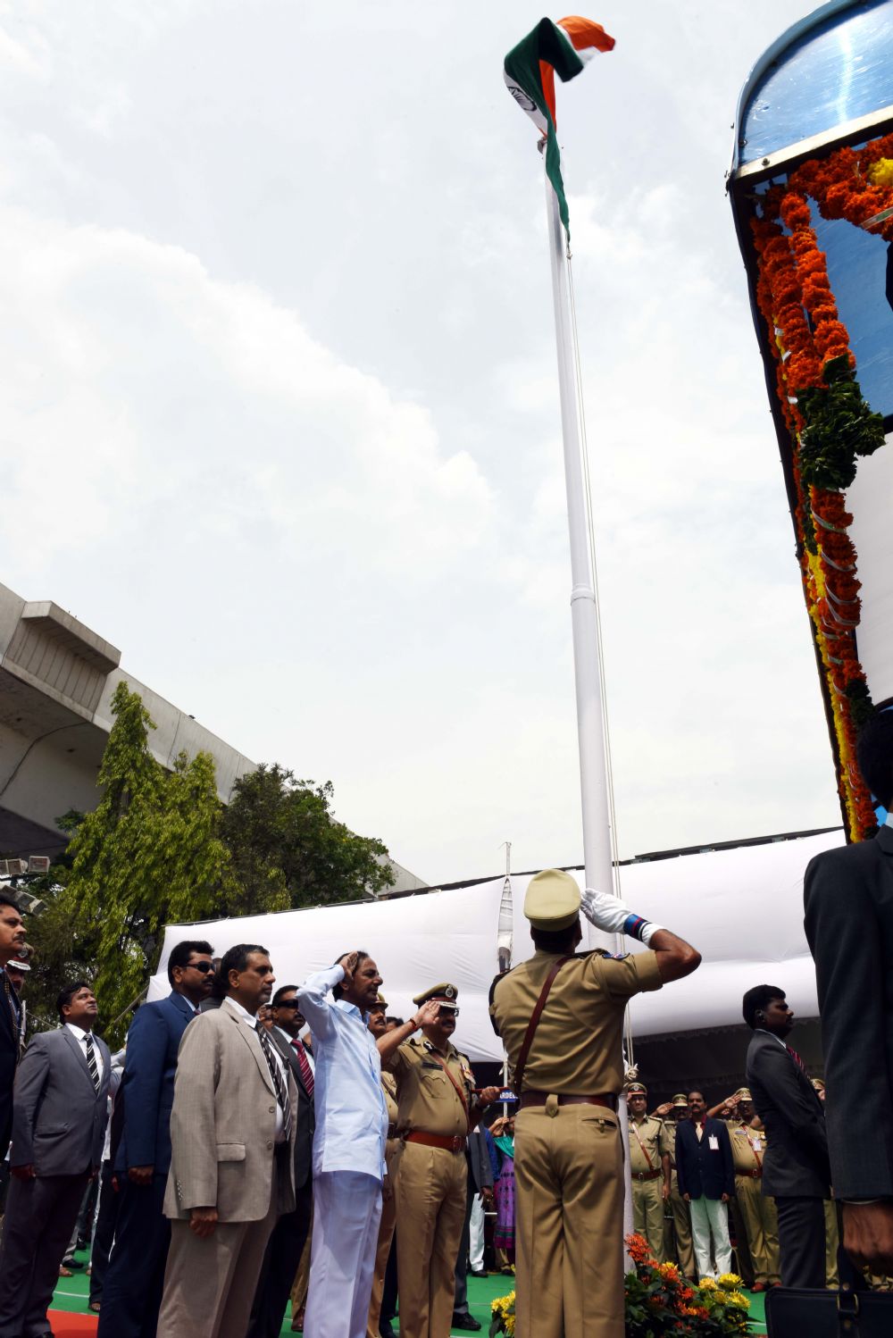 Chief Minister K. Chandrashekhar Rao Hoisted the National Flag at Parade Grounds, Secunderabad on the eve of 2nd Telangana Formation Day Celebrations on 2nd June 2016.