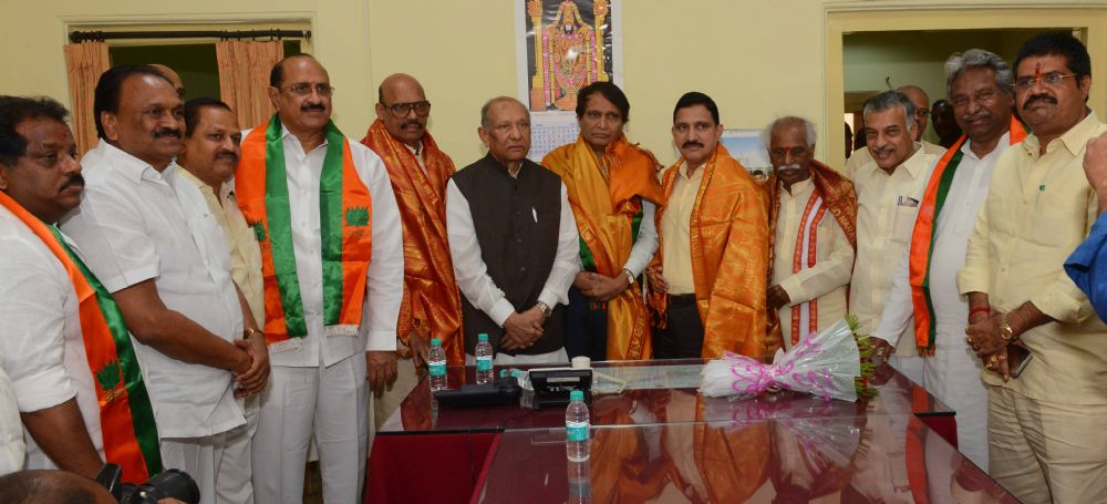 Newly elected Rajya Sabha members from Andhra Pradesh Suresh Prabhu, T.G. Venkatesh, Y.S. Chowdary Reciving Cretificates From Returning Officer K.Satyanarayana, Secretary, APLA on 3rd June 2016.