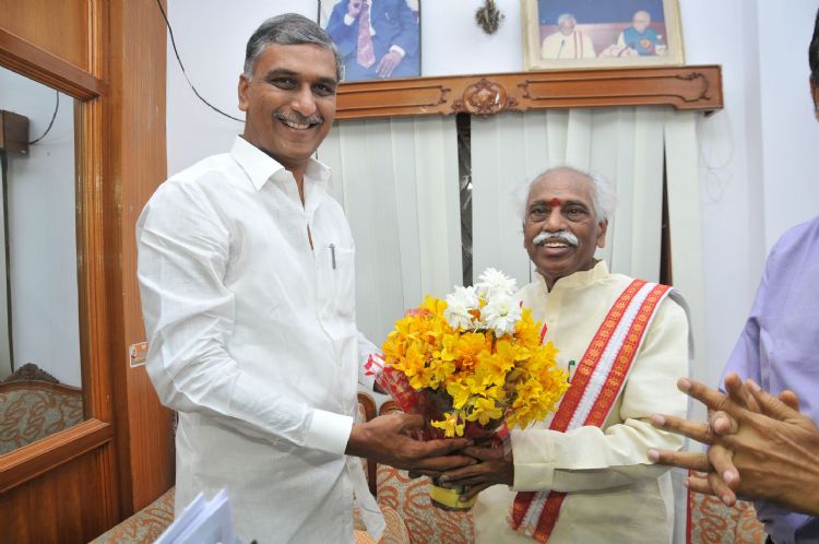 Telanaga Irrigation Minister Harish Rao met Union Minister for Labour and Employment Bandaru Datthathreya submitted a memorandum on 4th June 2016.