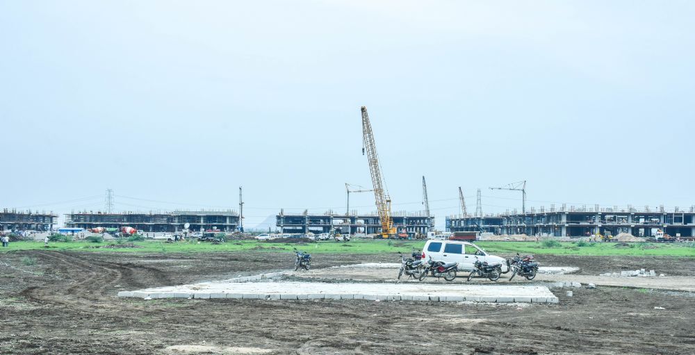 Andhra Pradesh Chief Minister N. Chandrababu Naidu inspecting the on going Secretariat building works in Velagapudi on 6th June 2016.