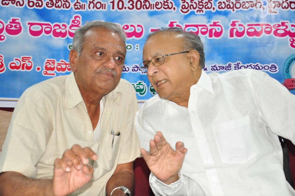 Former Central Minister S. Jaipal Reddy paying floral tributes and speaking at Seminar on "Present Politics - Major Chalenges" organised on occassion of Communist Legend Chandra Rajeshwara Rao 102 birth anniversary at Desoddharaka Bhavan, Fateh Maidan in Hyderabad on 6th June 2016.