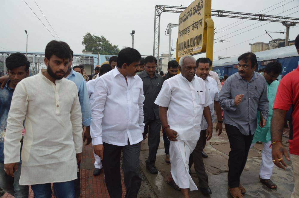 Andhra Pradesh Irrigation Minister Devineni Uma Maheswara Rao receiving RADHAKRISHNAN, Union Minister of State for Road, Transport, Highways & Shipping in Vijayawada Railway Station on7th June 2016.