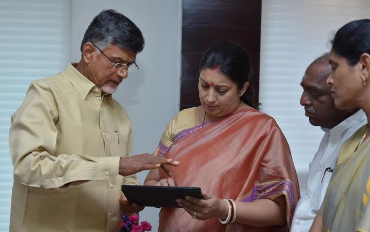 Andhra Pradesh Chief Minister N Chandra Babu Naidu met Union Human Resource Development Minister Smruthi Irani on education issues on 7th June 2016.