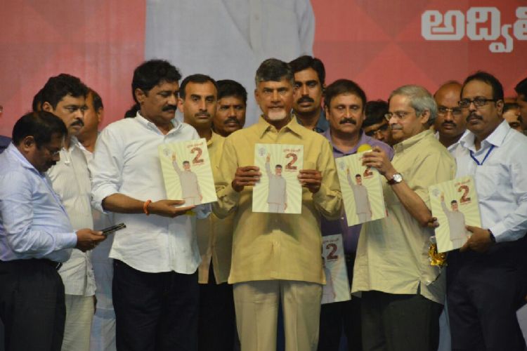 Andhra Pradesh Chief Minister N. Chandrababu Naidu releasing a book on completion of 2 years in Navyandhra at Vijayawada on 8th June 2016.