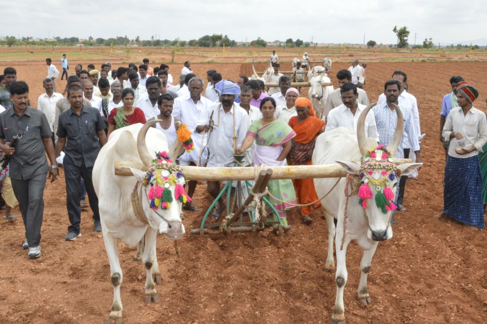 Civil Supplies Minister Paritala Suneetha participated in seed plantation in Raptadu village on 9th June 2016.