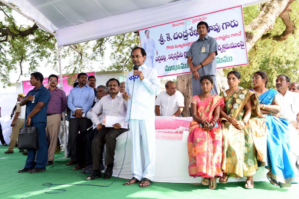 Chief Minister K. Chandrashekhar Rao distributing Tractors and participated in public meeting at Erravalli and Narsannapet villages of Jagdevpur mandal of Medak district on 10th June 2016.