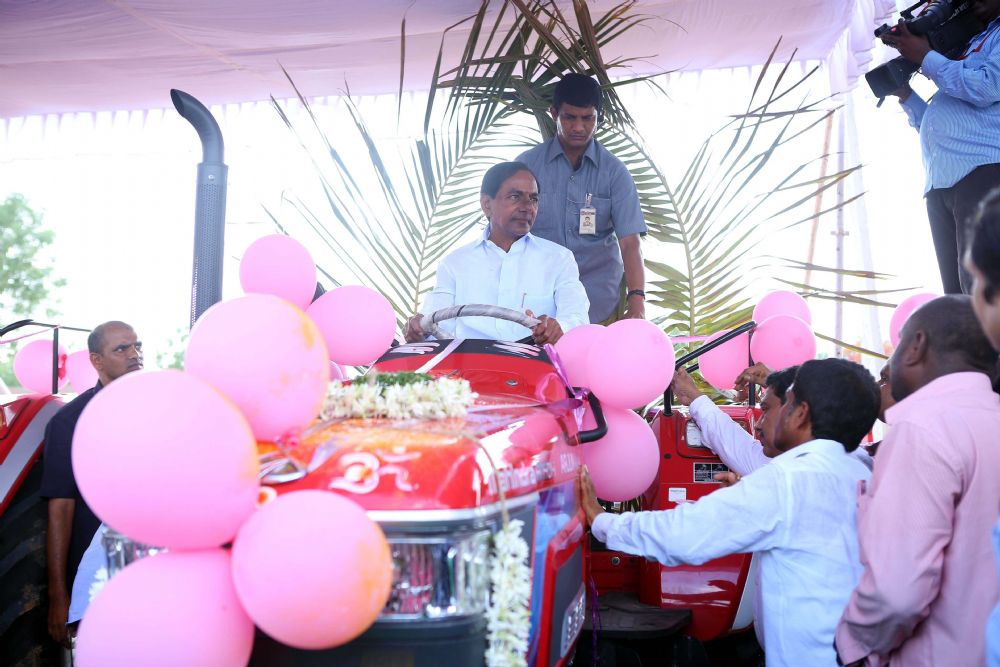 Chief Minister K. Chandrashekhar Rao distributing Tractors and participated in public meeting at Erravalli and Narsannapet villages of Jagdevpur mandal of Medak district on 10th June 2016.
