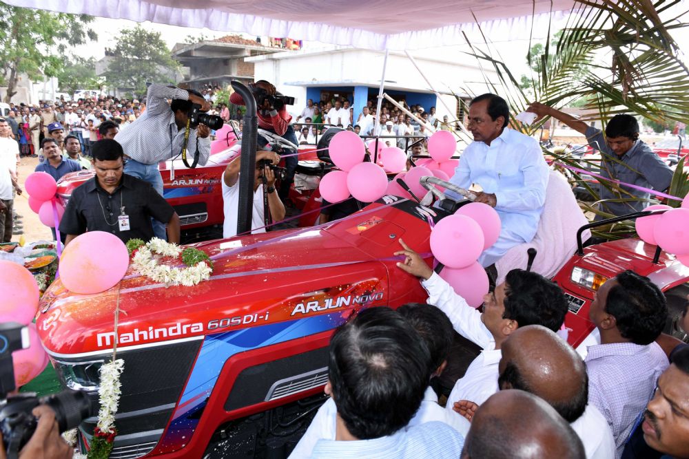 Chief Minister K. Chandrashekhar Rao distributing Tractors and participated in public meeting at Erravalli and Narsannapet villages of Jagdevpur mandal of Medak district on 10th June 2016.
