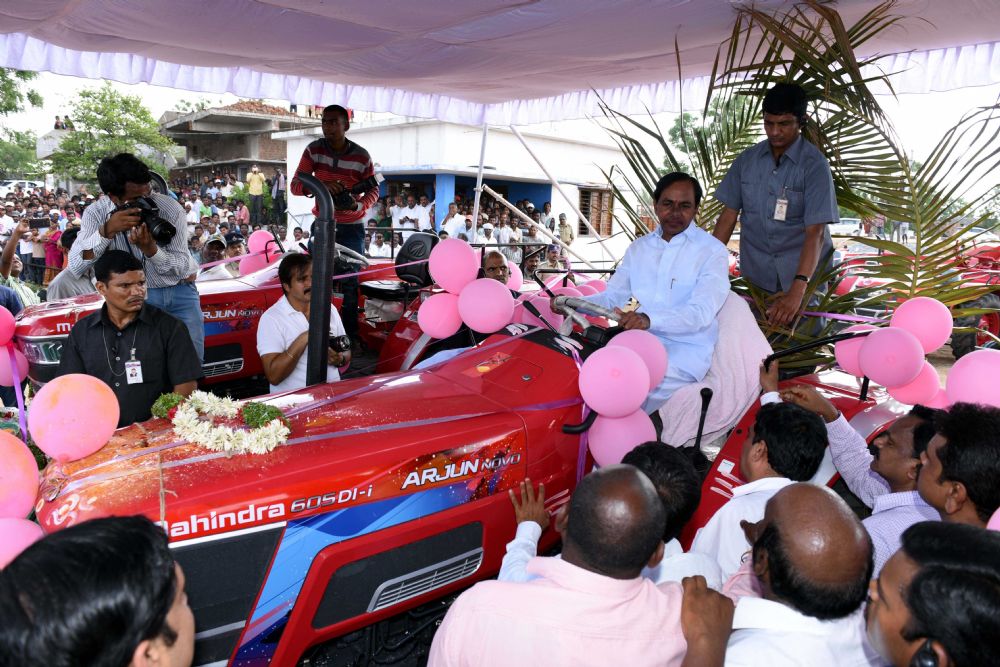 Chief Minister K. Chandrashekhar Rao distributing Tractors and participated in public meeting at Erravalli and Narsannapet villages of Jagdevpur mandal of Medak district on 10th June 2016.