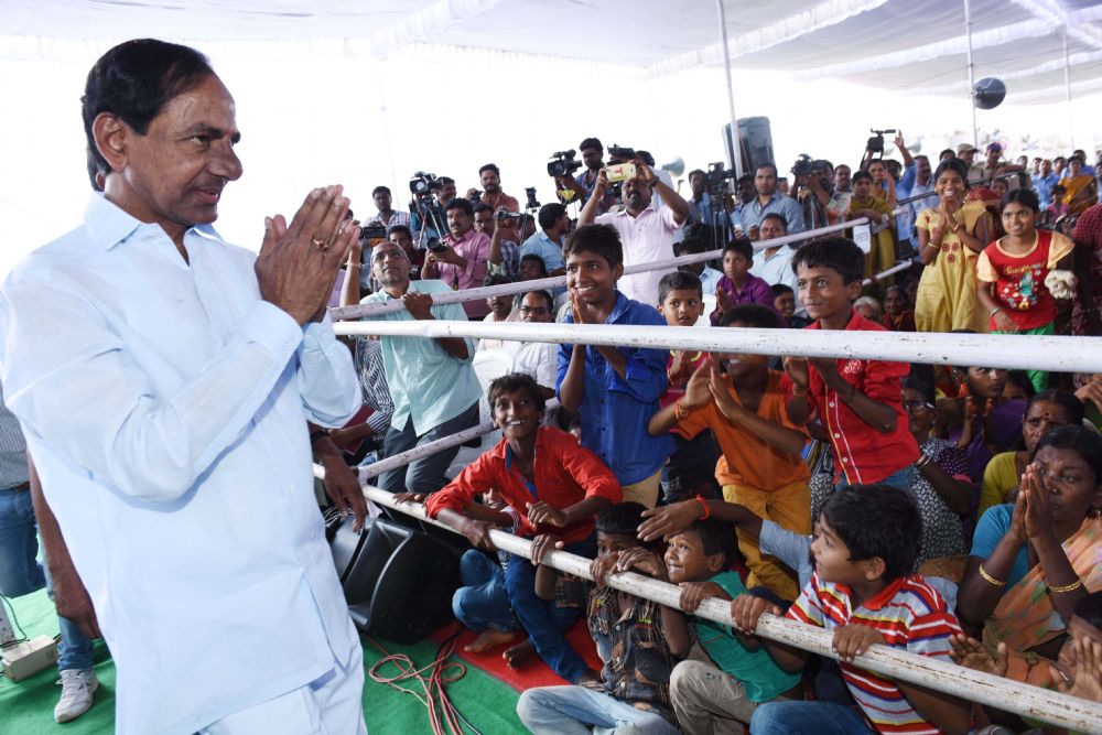 Chief Minister K. Chandrashekhar Rao distributing Tractors and participated in public meeting at Erravalli and Narsannapet villages of Jagdevpur mandal of Medak district on 10th June 2016.