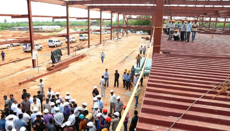 Andhra Pradesh Chief Minister N. Chandrababu Naidu inspecting the works at Gannavaram Airport New Terminal on 13th June 2016.