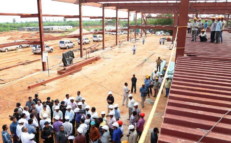 Andhra Pradesh Chief Minister N. Chandrababu Naidu inspecting the works at Gannavaram Airport New Terminal on 13th June 2016.