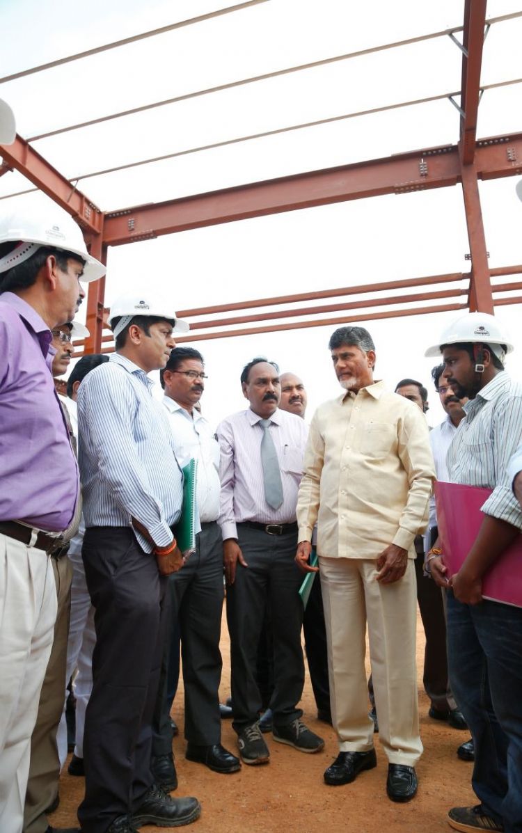 Andhra Pradesh Chief Minister N. Chandrababu Naidu inspecting the works at Gannavaram Airport New Terminal on 13th June 2016.