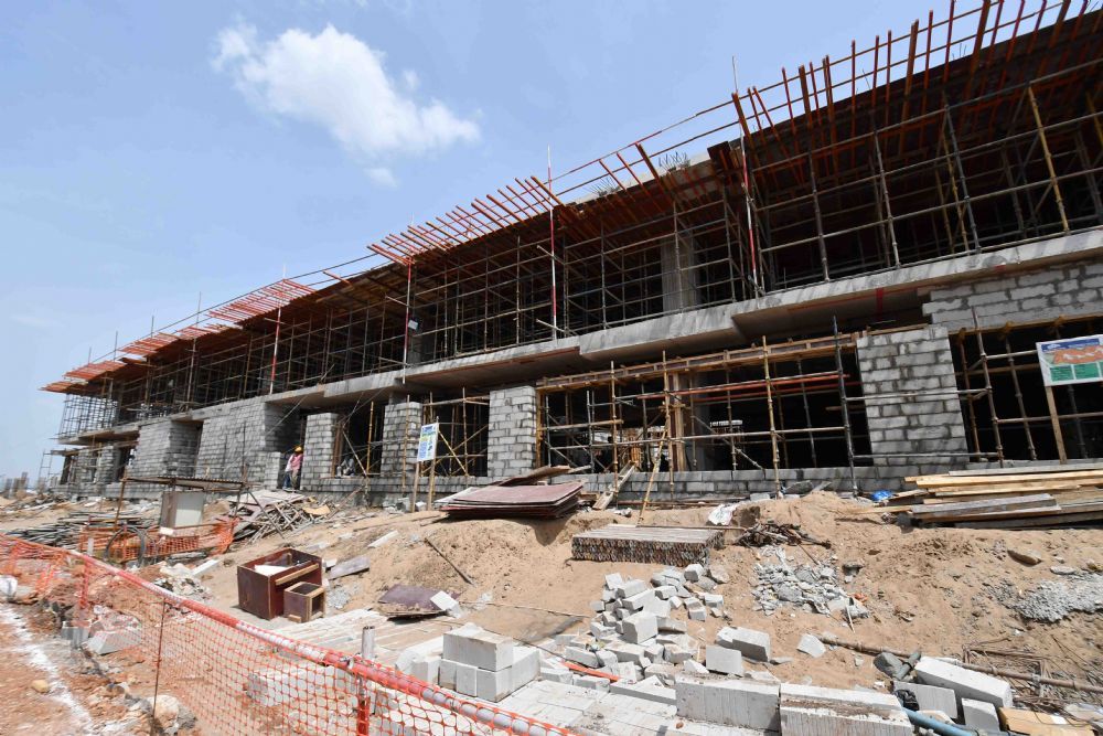 Andhra Pradesh Chief Minister N. Chandrababu Naidu inspecting the on going Secretariat building works in Velagapudi on 15th June 2016.