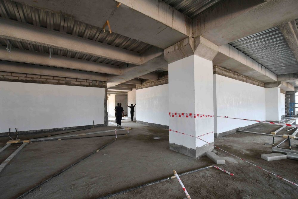 Andhra Pradesh Chief Minister N. Chandrababu Naidu inspecting the on going Secretariat building works in Velagapudi on 15th June 2016.