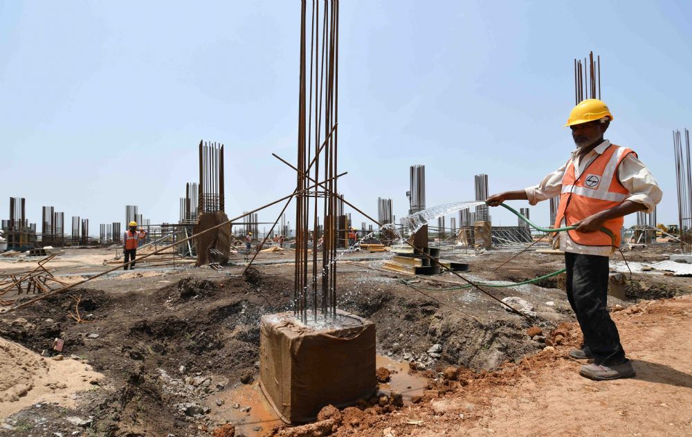 Andhra Pradesh Chief Minister N. Chandrababu Naidu inspecting the on going Secretariat building works in Velagapudi on 15th June 2016.