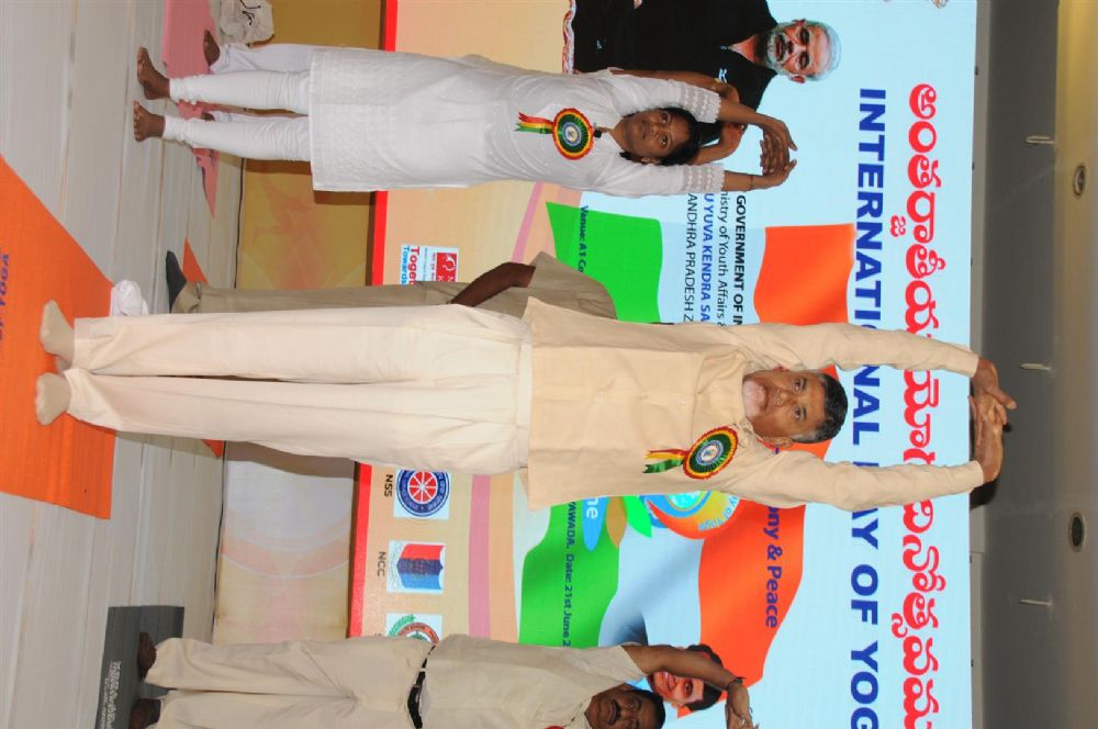 Union Railways Minister Suresh Prabhakar Prabhu joined Andhra Pradesh Chief Minister N. Chandrababu Naidu to participate in the International Yoga Day celebrations at A-Convention Centre in Vijayawada on Tuesday.