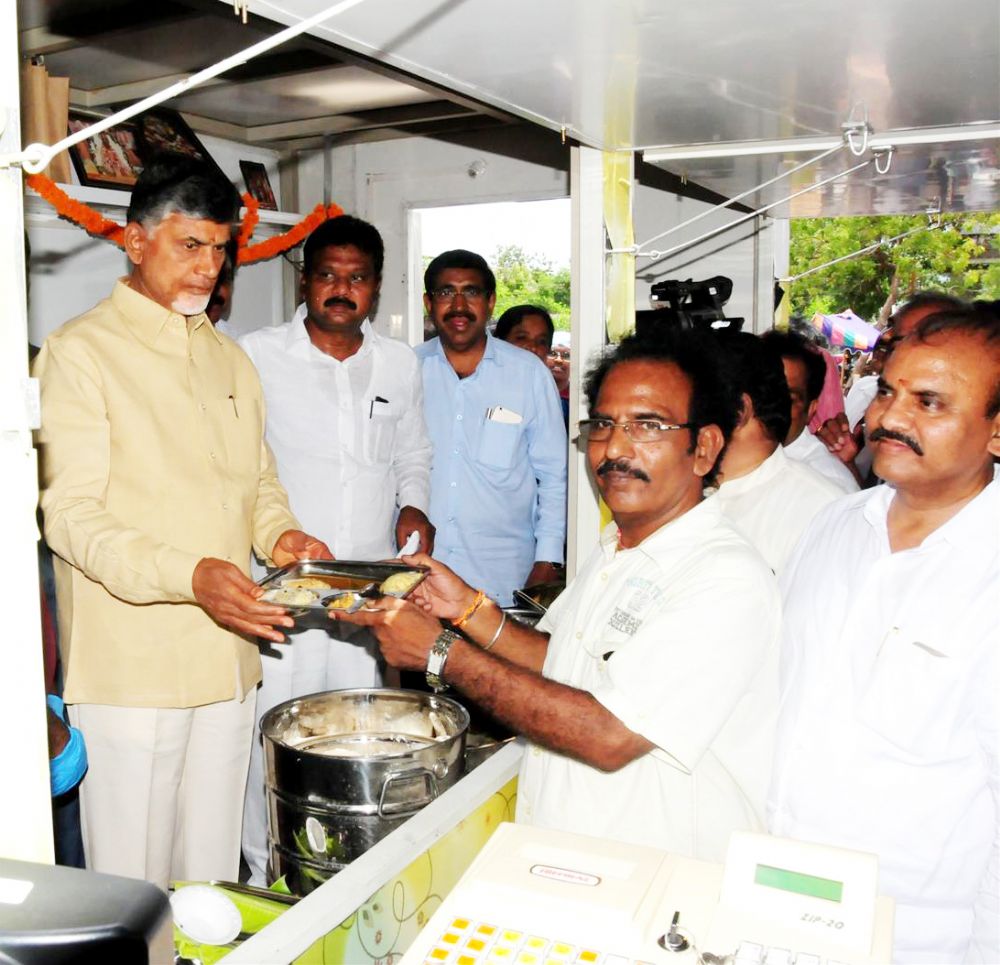 Andhra Prades Chief Minister N. Chandrababu Naidu Inagurated NTR Canteen at Rayapudi in Capital Area built by Hare Krishna Movement (Akshaya Patra) Charitable Foundation on 25th June 2016.