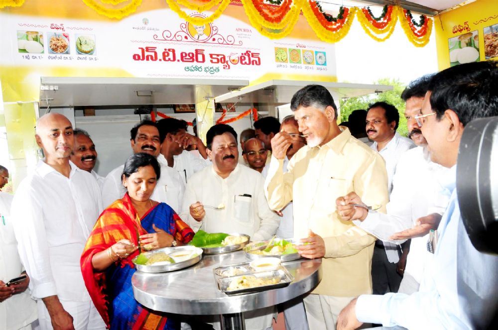 Andhra Prades Chief Minister N. Chandrababu Naidu Inagurated NTR Canteen at Rayapudi in Capital Area built by Hare Krishna Movement (Akshaya Patra) Charitable Foundation on 25th June 2016.