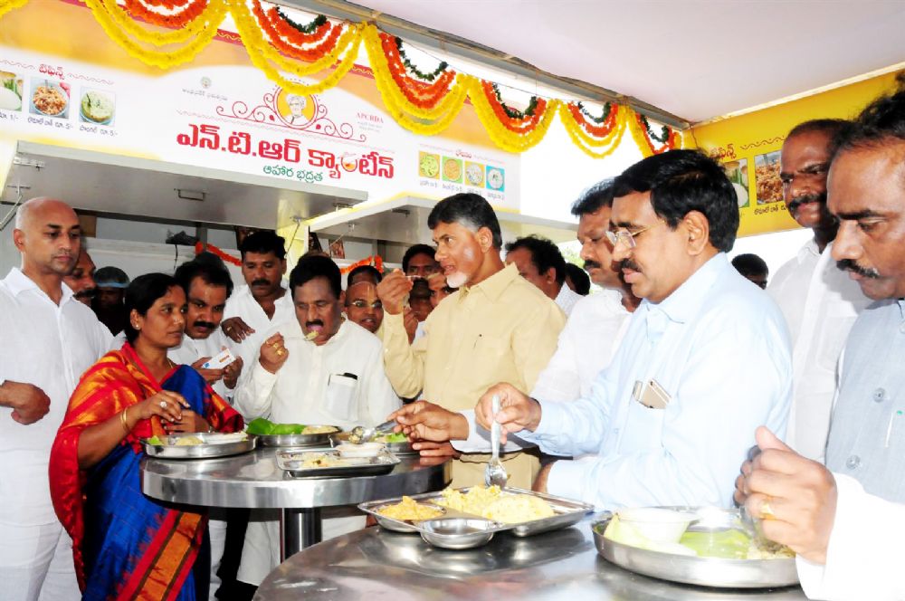 Andhra Prades Chief Minister N. Chandrababu Naidu Inagurated NTR Canteen at Rayapudi in Capital Area built by Hare Krishna Movement (Akshaya Patra) Charitable Foundation on 25th June 2016.