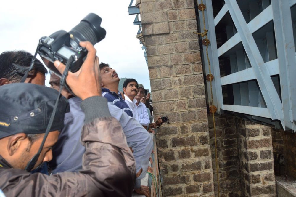 Andhra Pradesh Irrigation Minister Devineni Uma Maheswara Rao inspecting Pushkar Ghats, Durga Temple and Prakasam Barrage works in Vijayawada on 29th June 2016.