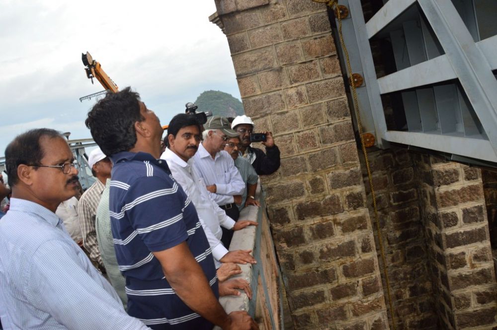 Andhra Pradesh Irrigation Minister Devineni Uma Maheswara Rao inspecting Pushkar Ghats, Durga Temple and Prakasam Barrage works in Vijayawada on 29th June 2016.