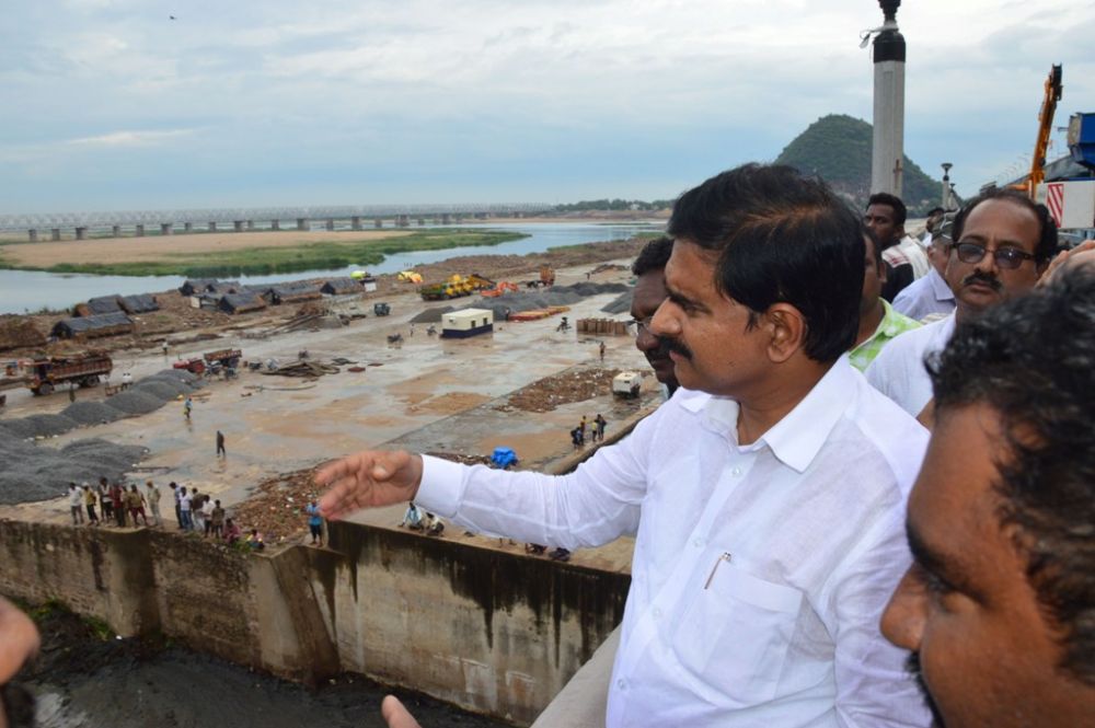 Andhra Pradesh Irrigation Minister Devineni Uma Maheswara Rao inspecting Pushkar Ghats, Durga Temple and Prakasam Barrage works in Vijayawada on 29th June 2016.