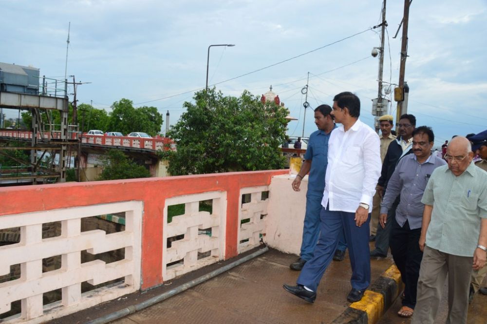 Andhra Pradesh Irrigation Minister Devineni Uma Maheswara Rao inspecting Pushkar Ghats, Durga Temple and Prakasam Barrage works in Vijayawada on 29th June 2016.