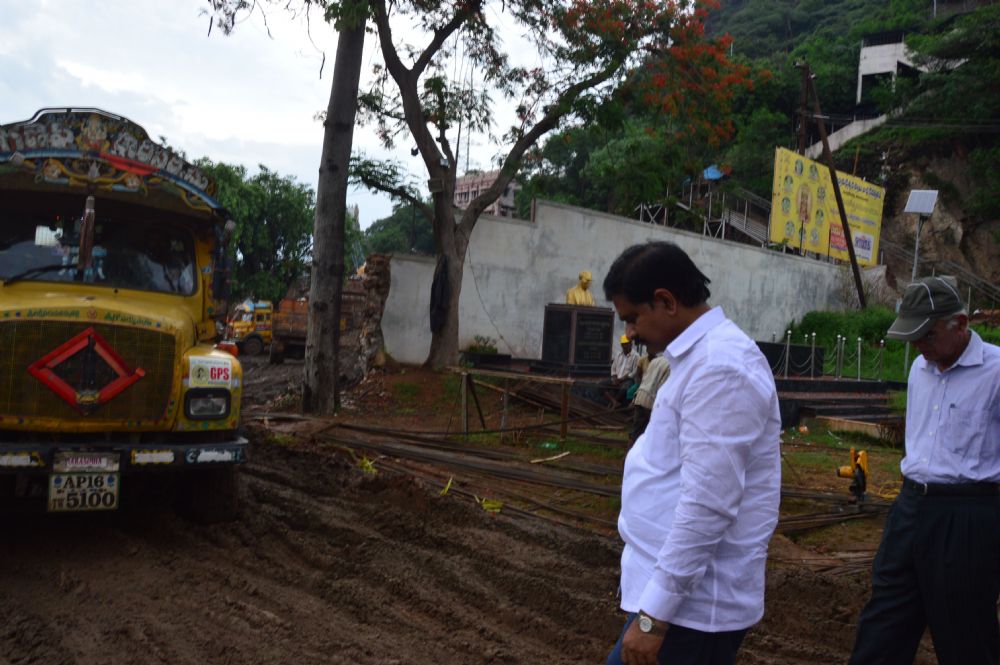 Andhra Pradesh Irrigation Minister Devineni Uma Maheswara Rao inspecting Pushkar Ghats, Durga Temple and Prakasam Barrage works in Vijayawada on 29th June 2016.