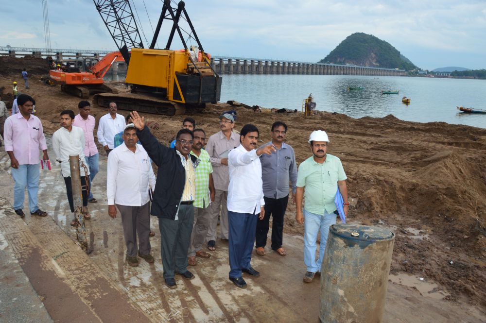 Andhra Pradesh Irrigation Minister Devineni Uma Maheswara Rao inspecting Pushkar Ghats, Durga Temple and Prakasam Barrage works in Vijayawada on 29th June 2016.