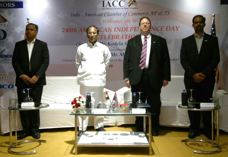 Andhra Pradesh Speaker Kodela Sivaprasada Rao participated in 240th American Independence Day Celebrations organized by Indo-American Chamber of Commerce in Hyderabad on 2nd July 2016.