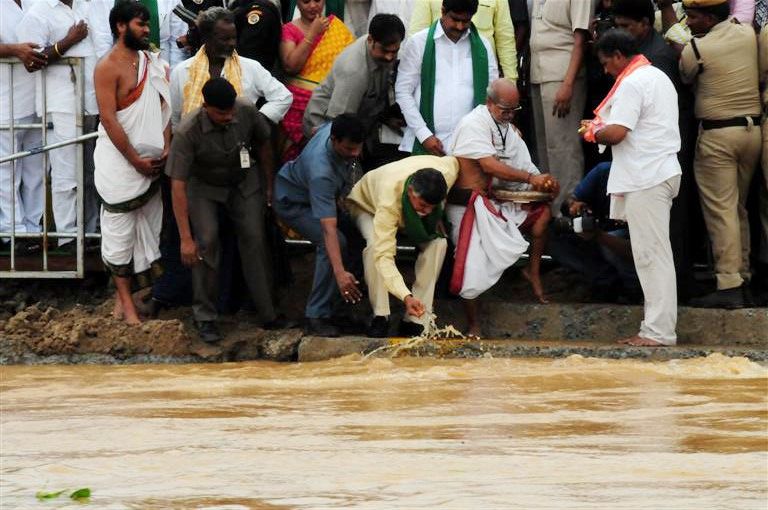 Andhra Pradesh Chief Minister N. Chandrababu Naidu performs Pooja and Harathi at Paitra Sangamam on 19th July 2016.