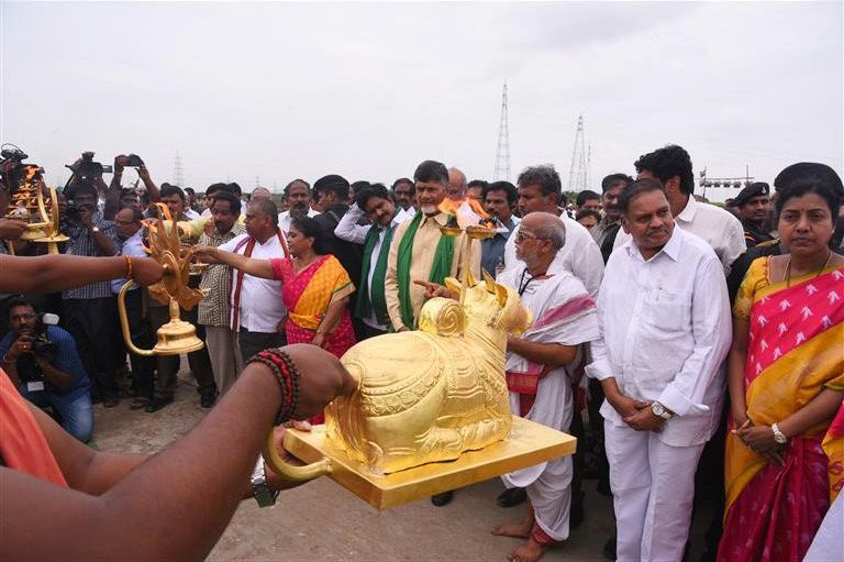 Andhra Pradesh Chief Minister N. Chandrababu Naidu performs Pooja and Harathi at Paitra Sangamam on 19th July 2016.