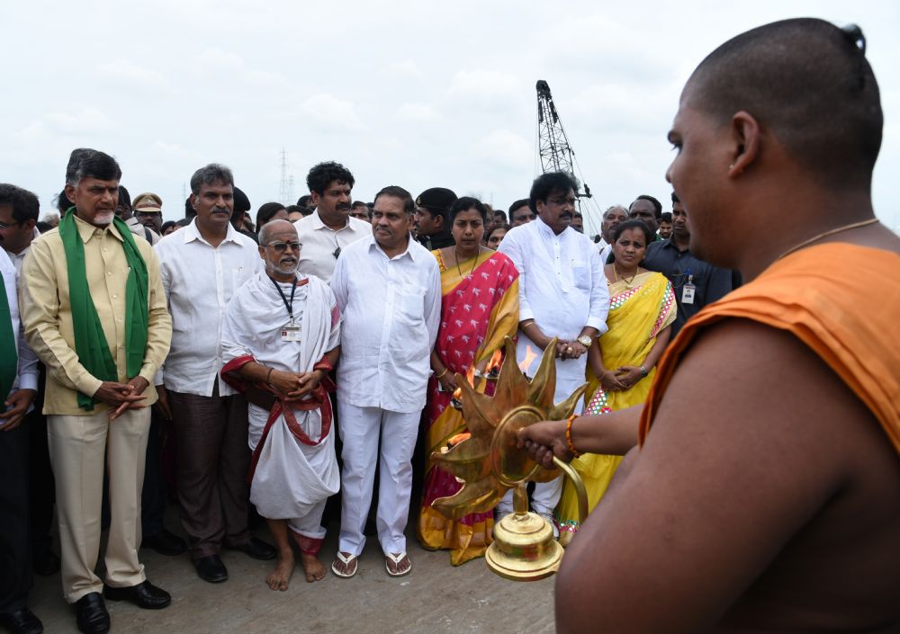 Andhra Pradesh Chief Minister N. Chandrababu Naidu participated in Pooja and Harathi at Paitra Sangamam of Godavari and Krishna Rivers at Ferry, Ibrahimpatnam Krishna District on 19th July 2016.